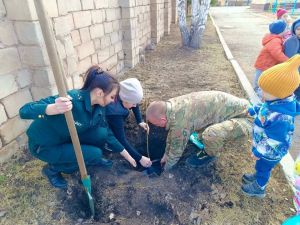 Әлмәттә махсус хәрби операциядә катнашучы балалар белән бергә агач утыртты