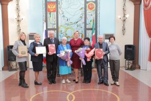 Әлмәт шәһәренең ЗАГС идарәсендә 20 февраль көнне бергә 50 ел яшәгән алтын туй юбилярлары – Михаил Николаевич һәм Татьяна Георгиевна Шатриловлар, Рәхимҗан һәм Роза Нәбиевларны котладылар.
